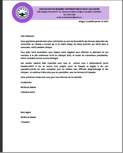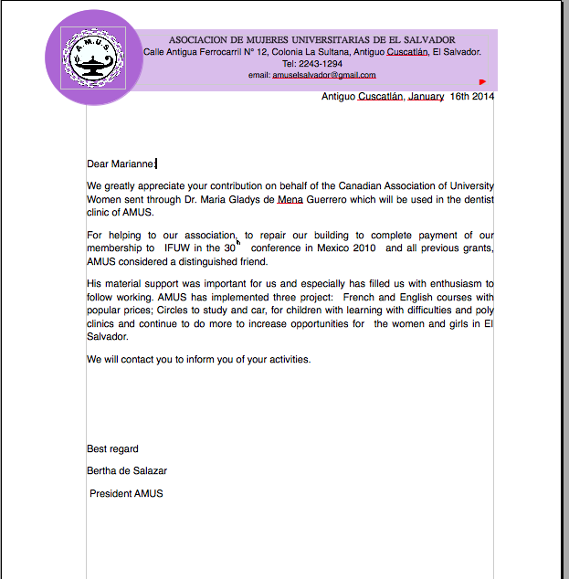 By instructions from President of AMUS Mrs. Bertha de Salazar and